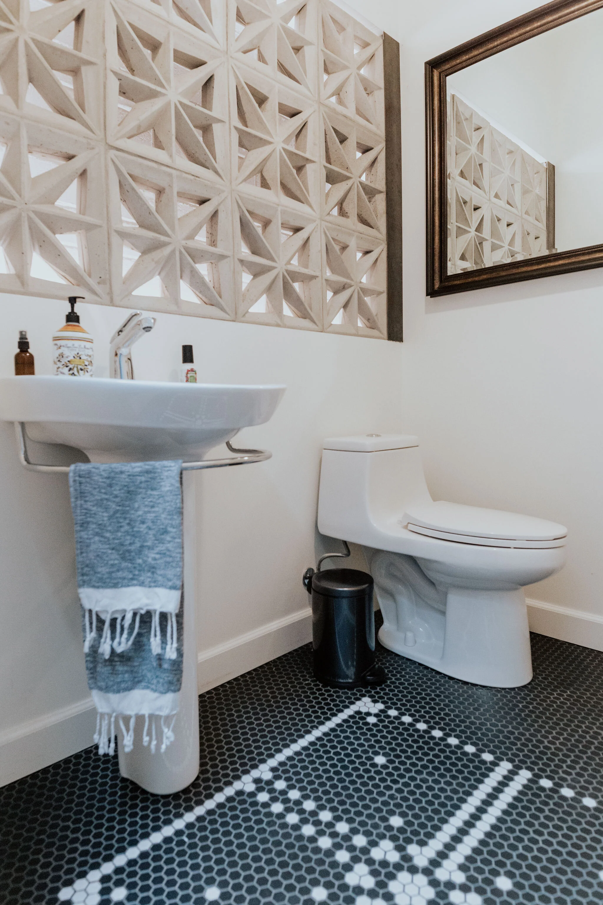 I used the block design to make a similar pattern on the floor with mini hexes from https://www.tileshop.com